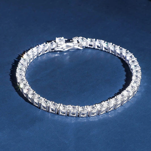 Hip Hop Zircon Crystal Necklace For Men Rock Silver Color Tennis Chain Necklace For Women Fashion Party Jewelry Gift